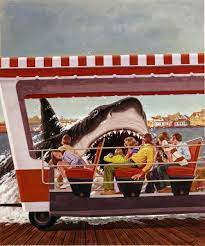 Before we reach the shark we pass through another body of water known as -The Red Sea. We pause patiently as other trams move into and through- The Black Lagoon.